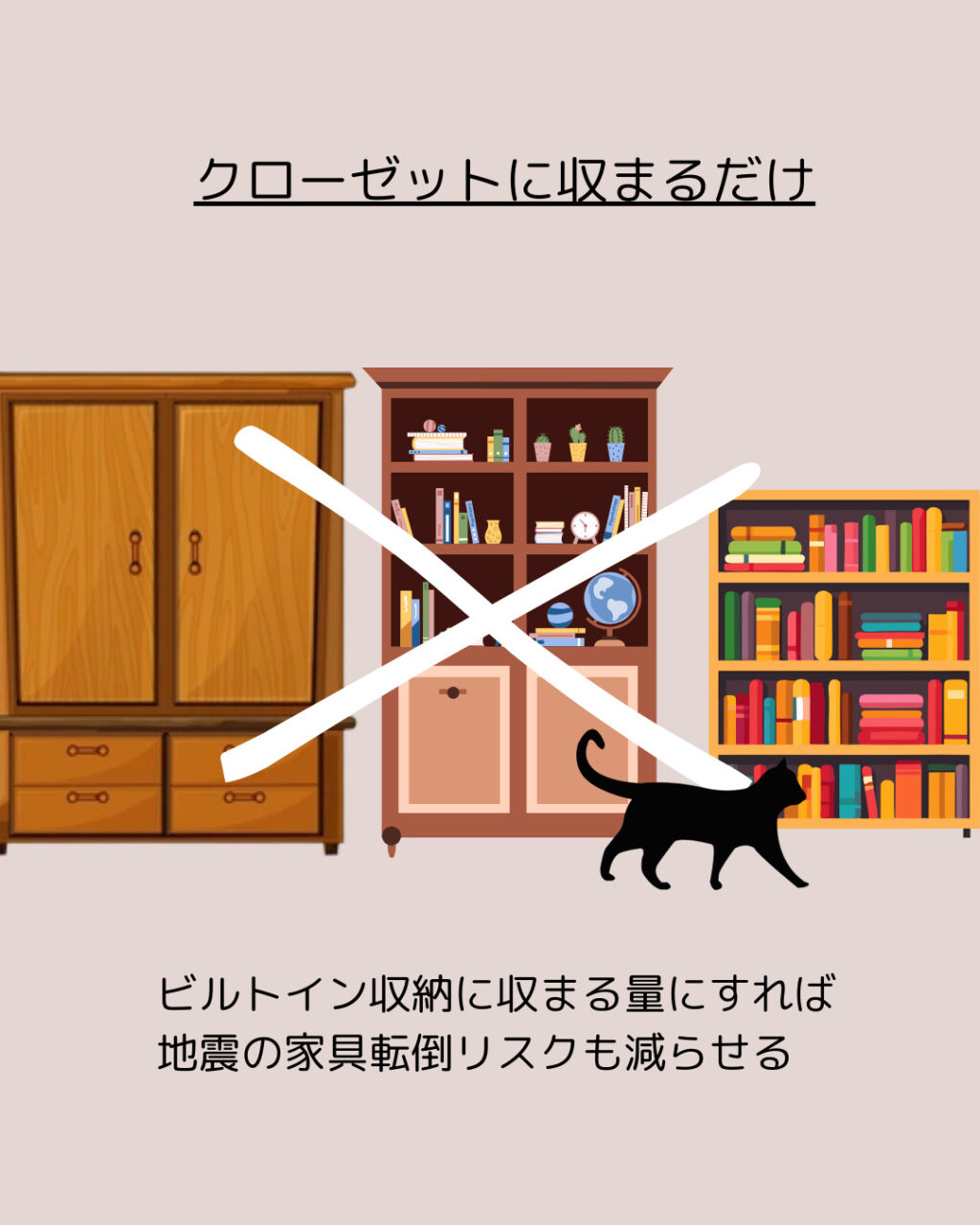 地震のときに家具が倒れてくるリスクもなくなったし、掃除も格段にラクに。